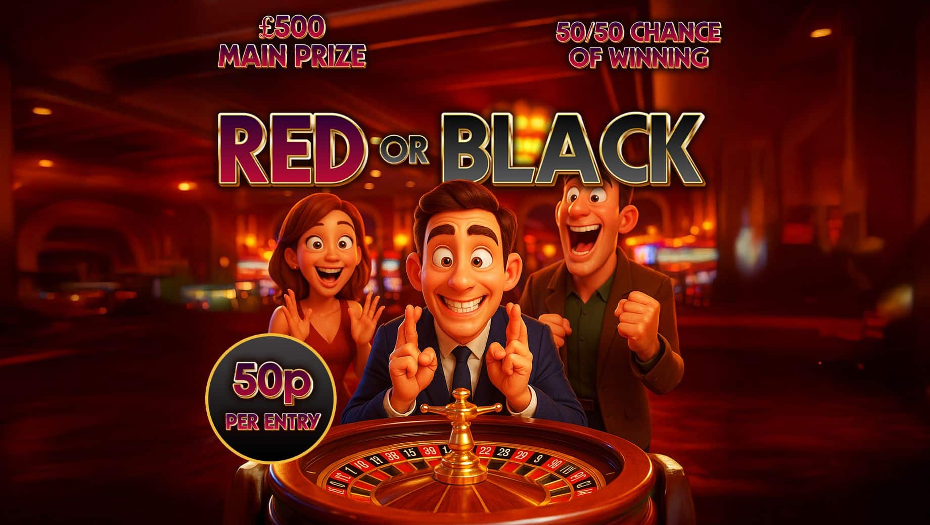 Enter NowRed or Black - 50/50 Chance of Winning!