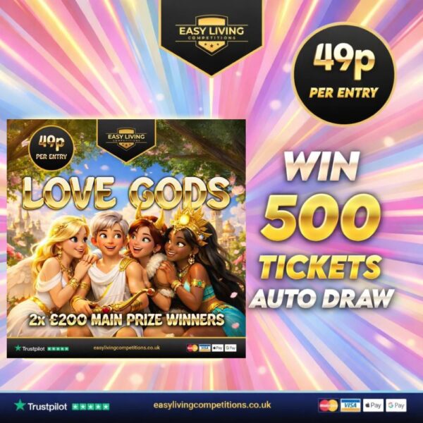 Enter NowWin 500 Tickets into Love Gods - Auto Draw!
